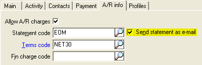 Click the A/R info tab and select the Send statement as e-mail check box.